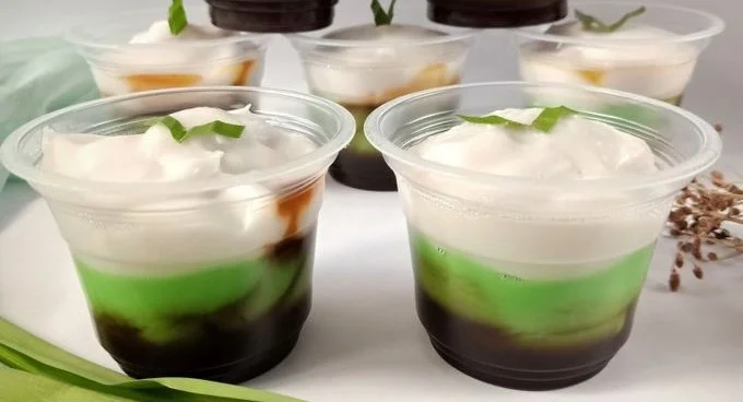 Setelah dingin, kue Jongkong siap disajikan. Perpaduan rasa manis dari gula merah, aroma pandan dari lapisan hijau, serta gurihnya santan menjadikan kue ini salah satu kudapan tradisional yang digemari masyarakat.
