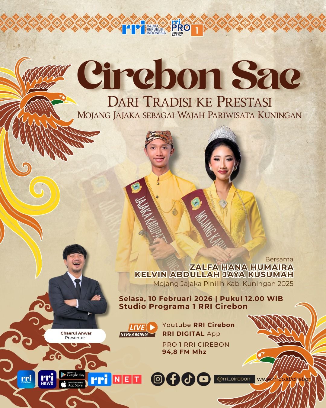 RRI.CO.ID, Cirebon - Program Obrolan Budaya RRINET kembali hadir di RRI, kali ini kami hadirkan duet Mojang Jajaka Kuningan yang bercerita banyak mengenai perjalanan mereka menjadi Duta Pariwisata. Tantangan besar di medium media sosial adalah membuat konten yang edukatif tapi tetap bisa diterima di masyarakat