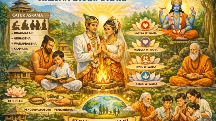 RRI.CO.ID, Denpasar – Penyuluh Agama Hindu Kementerian Agama Kota Denpasar Ida Bagus Gede Bawa Adnyana dalam siaran Surya Puja di Pro 4 RRI Denpasar menjelaskan bahwa konsep Kresna Brahmacari merupakan jalan spiritual dalam ajaran Hindu yang menekankan pentingnya kesucian, pengendalian diri, dan pengabdian kepada Tuhan sebagai upaya mencapai kebahagiaan sejati, Senin, 9 Maret 2026. Ajaran ini berkaitan erat dengan tahapan kehidupan manusia dalam konsep Catur Asrama, yaitu Brahmacari, Grihastha, Wanaprastha, dan Sanyasin atau Saniasa atau Bhiksuka.