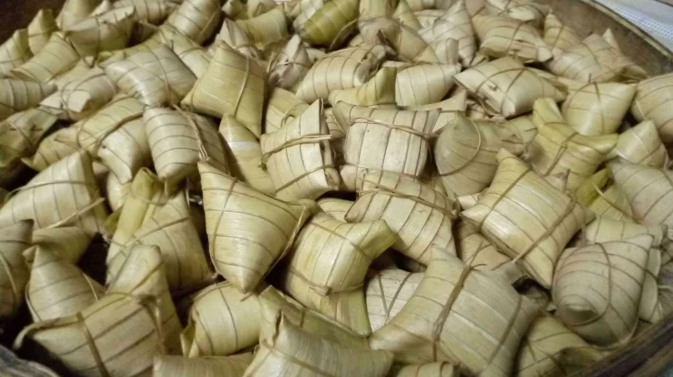 Bungkus dengan janur lalu ikat membentuk bantal kemudian rebus sampai masak selama lebih kurang 1 jam angkat.
