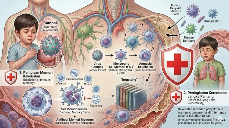 Kondisi tersebut membuat sistem imun seolah mengalami "amnesia" dan lupa cara melawan bakteri atau virus lainnya. Akibatnya, tubuh menjadi sangat rapuh dan membuka pintu bagi berbagai infeksi sekunder yang mematikan bagi balita.