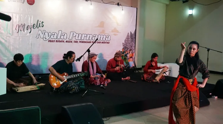 Perpaduan dua warisan besar tersebut semakin kaya dengan pembacaan puisi karya Ayi Suminar yang mengangkat tema cinta pada sesama. Nuansa kontemplatif terasa kuat ketika suling, kecapi, celempung, gitar, dan vokal menyatu dalam aransemen yang tenang namun menghanyutkan. (Foto : Humas Komoenitas Makara)