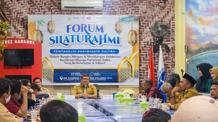 RRI.CO.ID, Kendari – Forum Silaturahmi Penthahelix Pariwisata Sulawesi Tenggara (Sultra) yang digelar di RM Kampoeng Wisata Khas Sulawesi, Senin (2/3/2026), berlangsung hangat dan penuh semangat kolaborasi. Kegiatan ini menjadi ruang temu lintas sektor dalam upaya memperkuat kemitraan menuju pariwisata Sultra yang berkelanjutan dan inklusif.