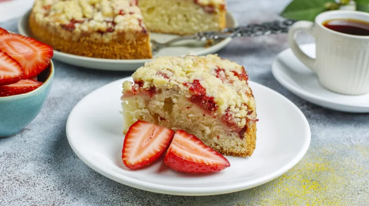 • Strawberry cake yang merupakan kue lembut dengan tambahan potongan buah stroberi segar sebagai topping atau campuran adonan.