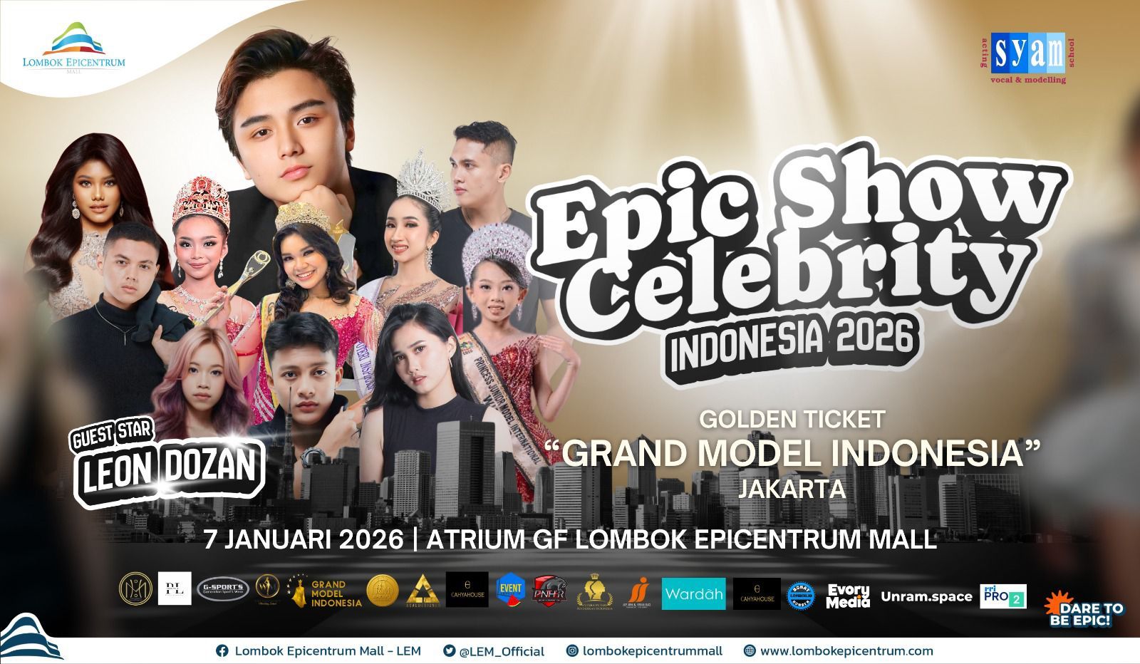 KBRN, Mataram: EPIC Show Celebrity Indonesia 2026 sukses digelar pada Selasa, 7 Januari 2026 di Atrium GF Lombok Epicentrum Mall. Ajang bergengsi ini menjadi panggung pembuktian bakat dan kepercayaan diri generasi muda untuk bersinar di hadapan publik serta para profesional industri hiburan Indonesia.