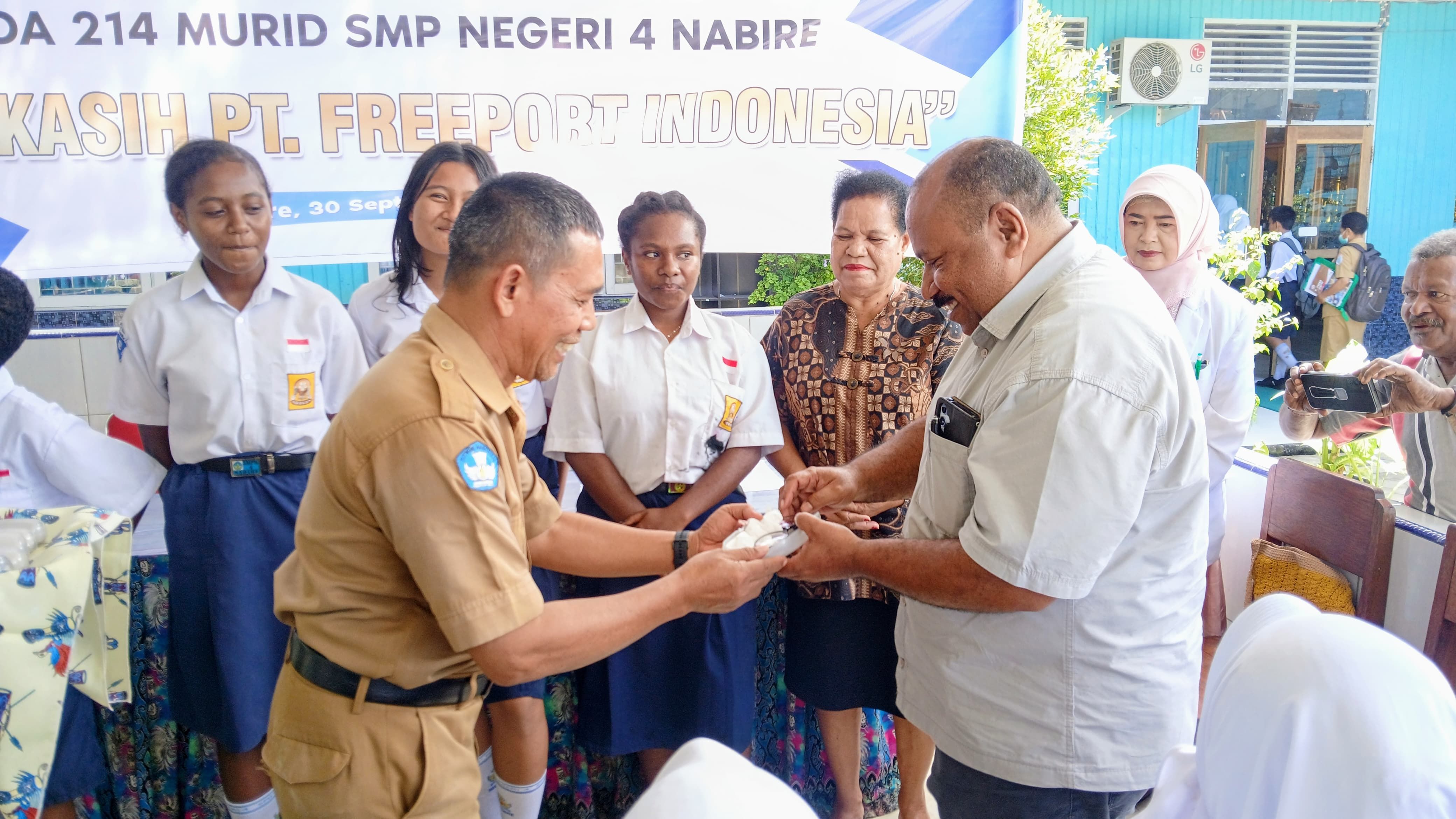 “Penyerahan kacamata gratis kepada 214 pelajar SMP Negeri 4 Nabire merupakan rangkaian bakti sosial PT Freeport Indonesia dalam rangka memperingati HUT ke-80 Republik Indonesia. Anak-anak adalah aset bangsa, sehingga menjaga kesehatan mata mereka sangat penting karena mereka calon pemimpin masa depan,” ujar Dennij Rumayomi kepada RRI.
