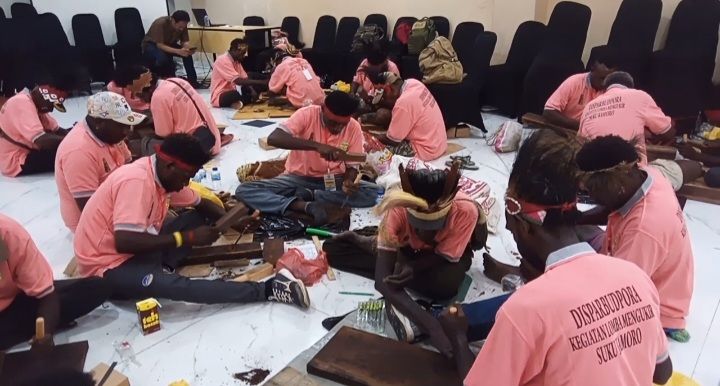 KBRN, Mimika: Lestarikan budaya, Dinas Pariwisata kebudayaan Pemuda dan Olahraga (Disparbudpora) Kabupaten Mimika Provinsi Papua Tengah gelar lomba mengukir patung suku Komoro.