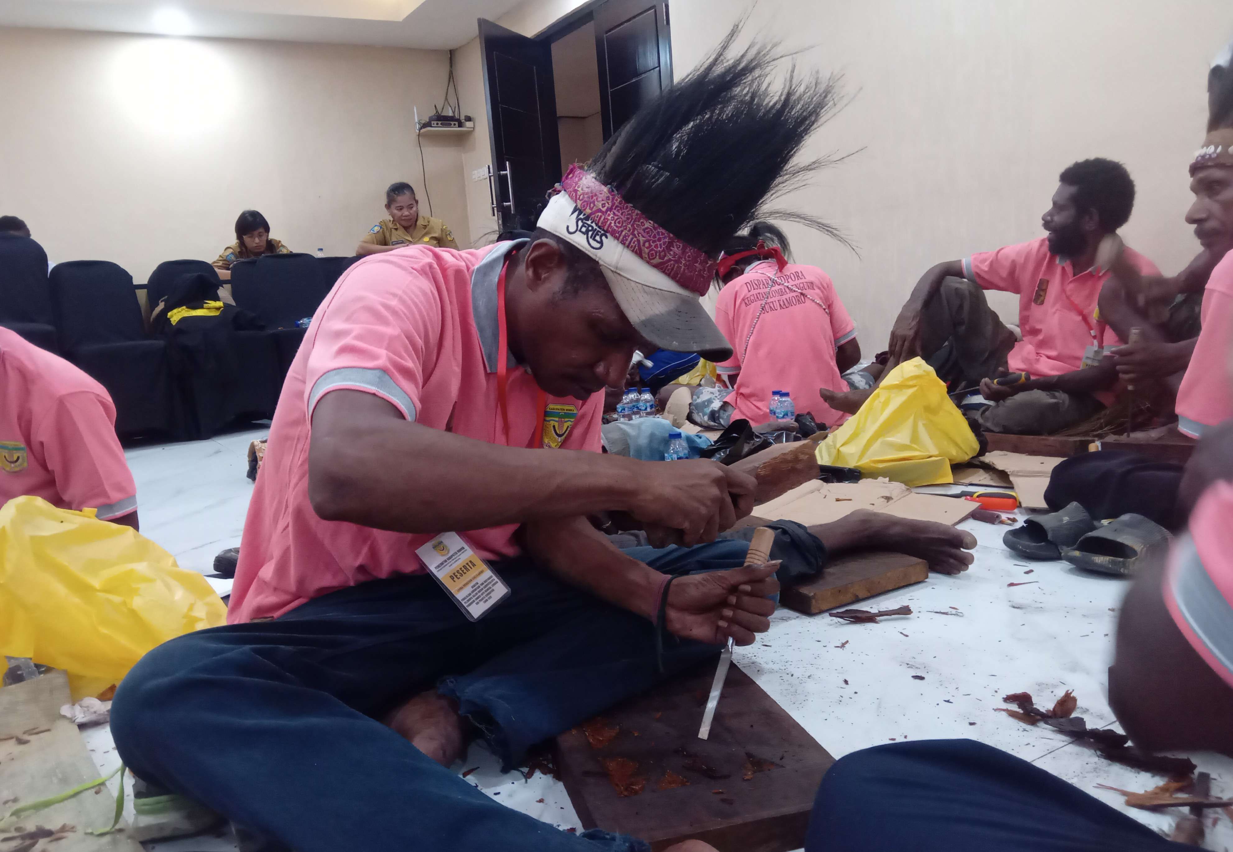 Lestarikan Budaya Diparbudpora Adakan Lomba Mengukir Patung Kamoro