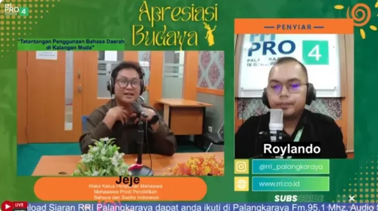 Hal tersebut dibahas dalam diskusi bertajuk “Tantangan Penggunaan Bahasa Daerah di Kalangan Anak Muda” di PRO 4 Radio Republik Indonesia Palangka Raya. Wakil Ketua Himpunan Mahasiswa Program Studi Pendidikan Bahasa dan Sastra Indonesia, Jeje, menyampaikan bahwa generasi muda memiliki peran penting dalam menjaga eksistensi bahasa daerah.