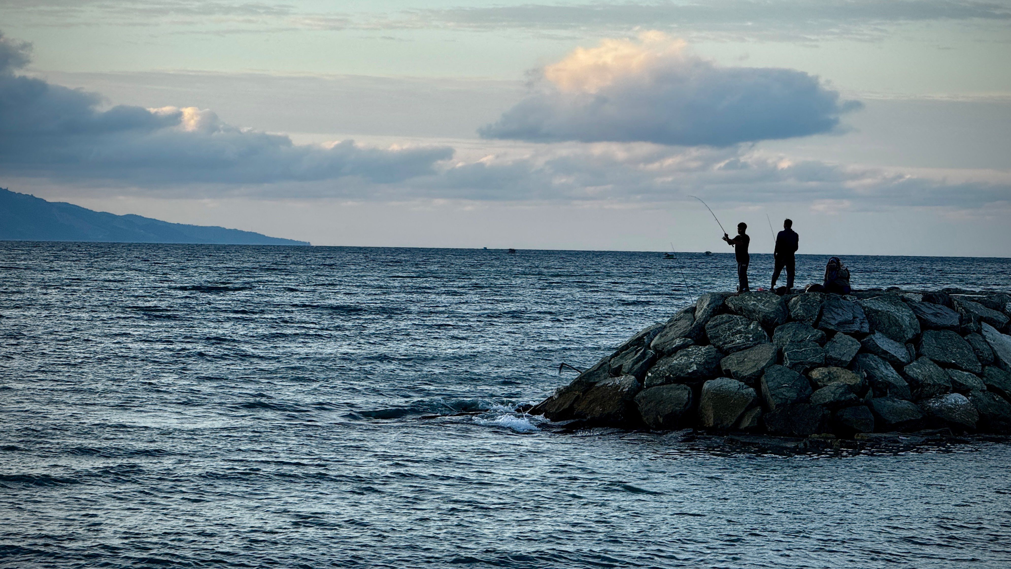 Sejumlah warga tampak memanfaatkan waktu sore dengan memancing di pinggir pantai menggunakan peralatan sederhana. Aktivitas ini dilakukan secara santai sambil menikmati pemandangan laut.