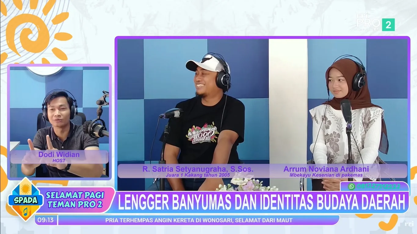 RRI.CO.ID, Purwokerto : Kesenian lengger menjadi salah satu identitas budaya yang melekat kuat pada masyarakat Banyumas. Dalam dialog budaya di RRI Purwokerto, R. Satria Setyanugraha, S.Sos menegaskan bahwa lengger bukan sekadar seni pertunjukan, melainkan sebagai warisan sejarah dan spiritualitas yang tumbuh dalam kehidupan masyarakat Banyumas.