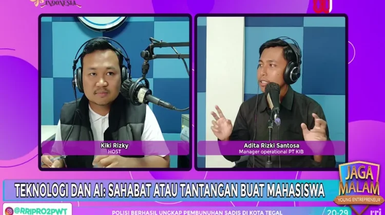 Dalam Program Young Entrepreneur Pro 2 RRI Purwokerto bersama Aditia Rizki Santosa – Manager Operational PT KIB membahas tema “Teknologi dan AI: Sahabat atau Tantangan buat Mahasiswa”. Dalam hal ini, Aditia menyampaikan pandangannya terhadap eksistensi teknologi dan AI di tengah-tengah mahasiswa.