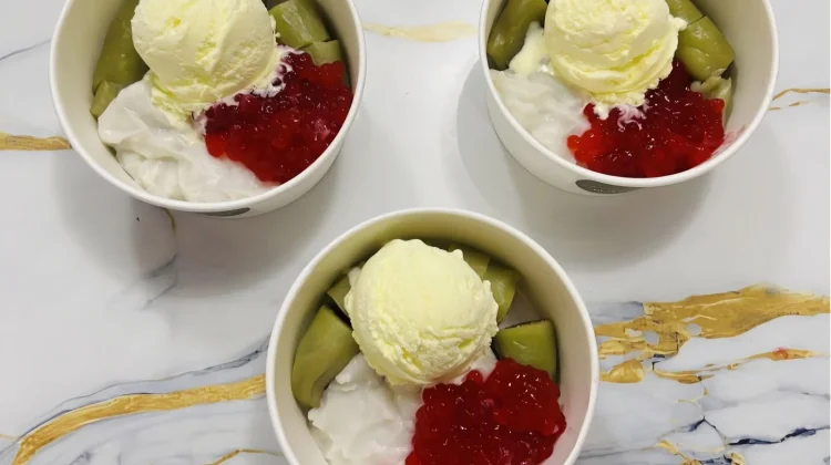 Modifikasi kuliner khas Makassar ini menghadirkan perpaduan unik antara tekstur lembut pisang yang dibalut adonan hijau kenyal dengan dinginnya es krim vanila yang lumer di mulut, memberikan sensasi berbuka yang berbeda dari biasanya.