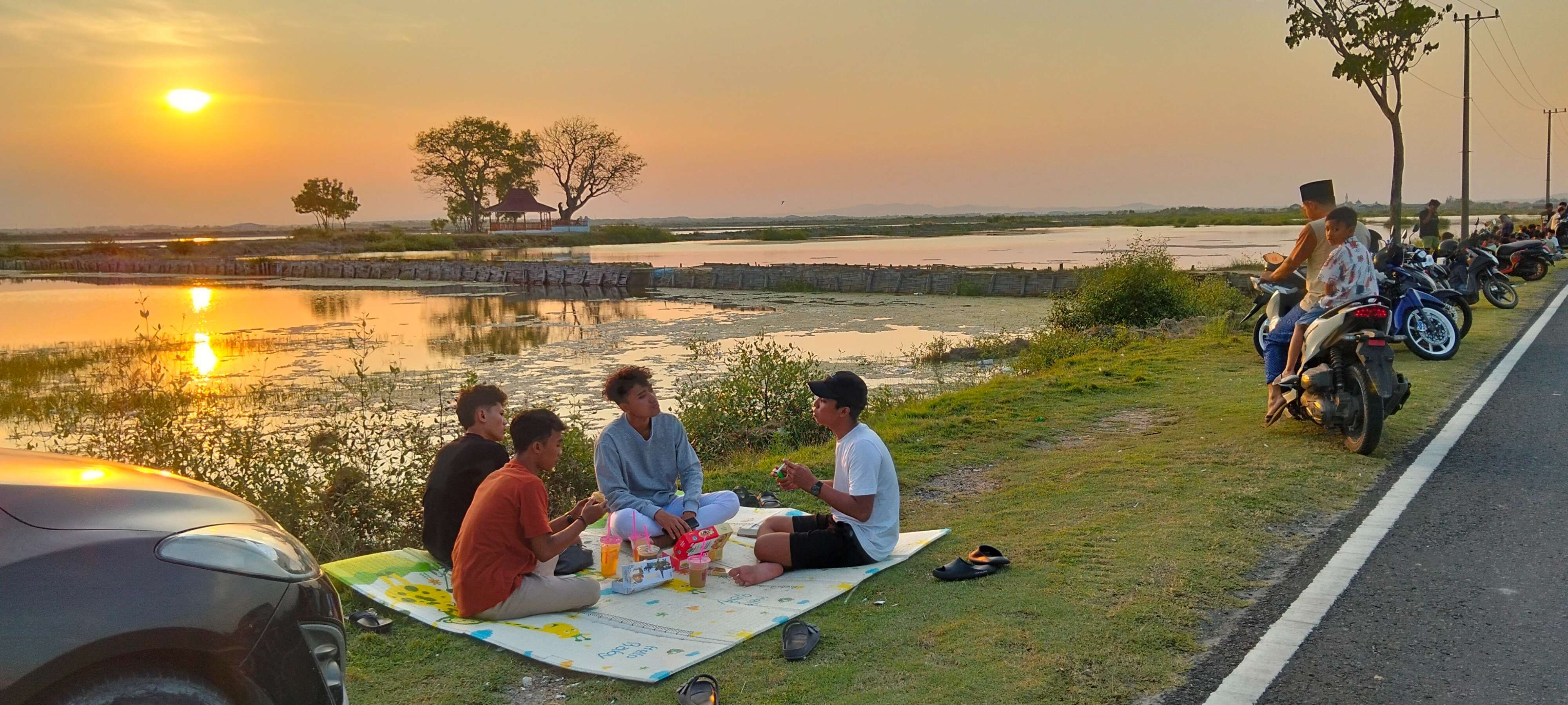Di lokasi tersebut, pengunjung juga dapat menghamparkan tikar untuk bersantai menikmati momen matahari terbenam sembari menikmati minuman dan makanan ringan.