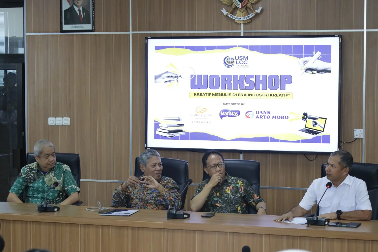 Kegiatan menghadirkan narasumber sastrawan Triyanto Triwikromo dan CEO PT Marimas Putra Kencana serta content creator edukatif, Harjanto Kusuma Halim. Workshop dipandu Direktur USM LCC, Adi Ekopriyono yang diikuti para mahasiswa dan dosen.