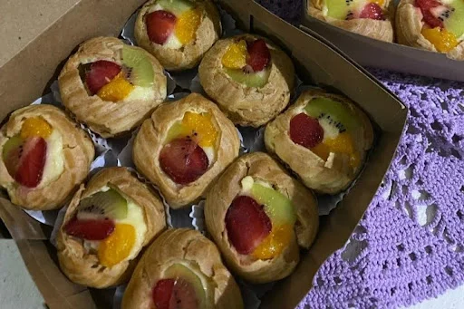 Warna-warni buah seperti stroberi, kiwi, anggur, atau mangga membuat roti soes terlihat cantik. Hal ini menjadi nilai tambah untuk promosi di media sosial.
