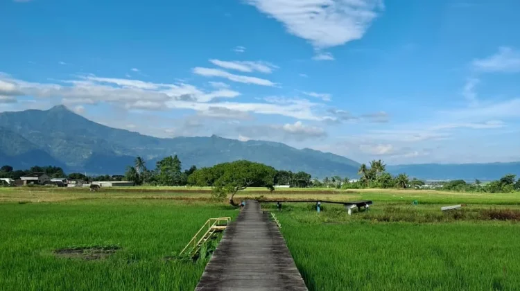 Di sini terdapat jembatan kayu yang berada di atas hamparan sawah hijau. Jembatan tersebut memudahkan pengunjung untuk merasakan keindahan alam dari dekat.