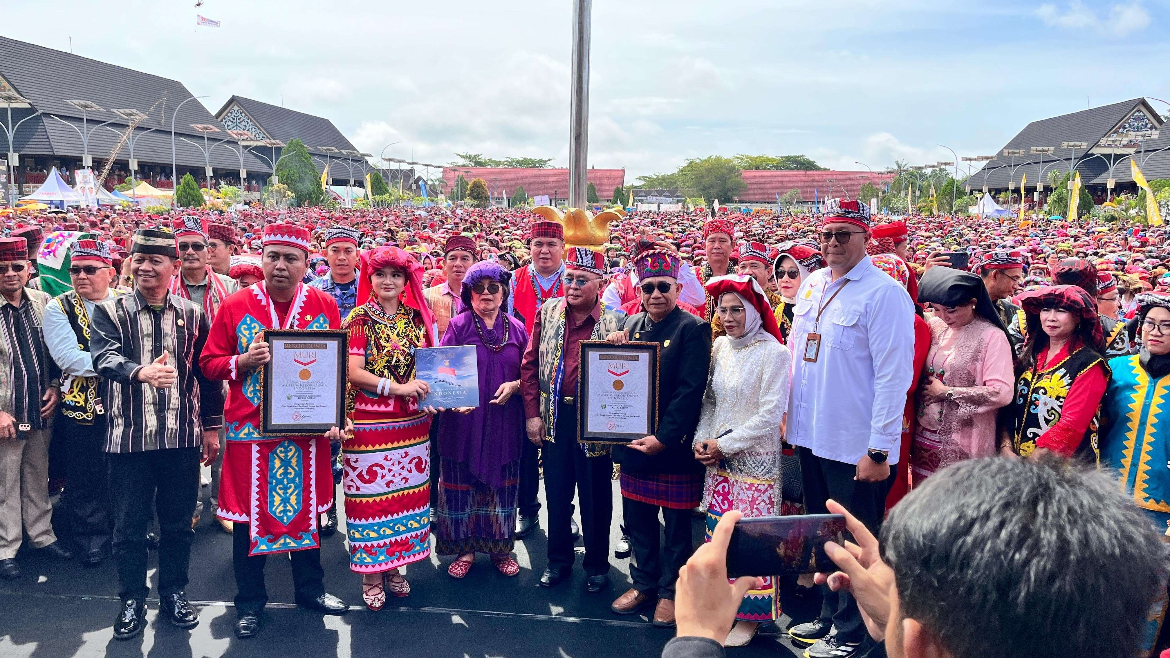 KBRN, Sendawar: Sekitar 18 ribu warga, terdiri dari pria dan wanita, mengenakan Kesapuuq dan Tuduukng pada peringatan HUT Kutai Barat ke-26. Jumlah tersebut berhasil mencatatkan rekor MURI dunia untuk penggunaan Kesapuuq dan Tuduukng terbanyak dalam satu kesempatan.