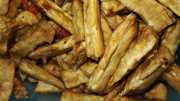 Setelah kering, irisan singkong digoreng dalam minyak panas hingga matang dan berwarna kuning keemasan.