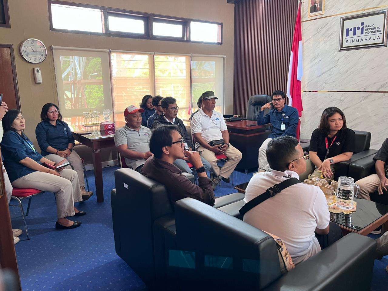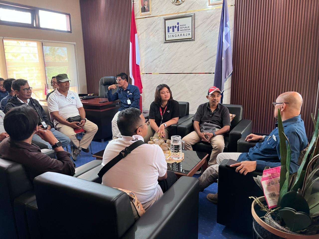 KBRN, Singaraja: Kepala LPP RRI Singaraja, Nauval Sahupala menerima kunjungan Tim Produksi TVRI Bali, Selasa (11/11/2025). Kunjungan tersebut dilakukan dalam rangka pelaksanaan produksi film pendek yang mengambil lokasi syuting di Kabupaten Buleleng, termasuk di lingkungan RRI Singaraja pada tanggal 11 hingga 14 November 2025. Sebelum proses produksi dimulai, tim TVRI Bali mengadakan diskusi bersama pimpinan LPP RRI Singaraja. Pertemuan tersebut membahas konsep produksi film serta upaya memperkuat sinergi antara dua lembaga penyiaran publik, yaitu TVRI dan RRI. Melalui pertemuan ini, diharapkan terjalin kerja sama yang lebih erat dalam mendukung pengembangan konten kreatif lokal di Bali. Produser, Putu Krisdiana Narakusuma mengatakan, tim nya tengah menggarap film pendek berjudul "Gayatri". Karya keduanya ini berkisah tentang pasangan muda yang belum memiliki keturunan.