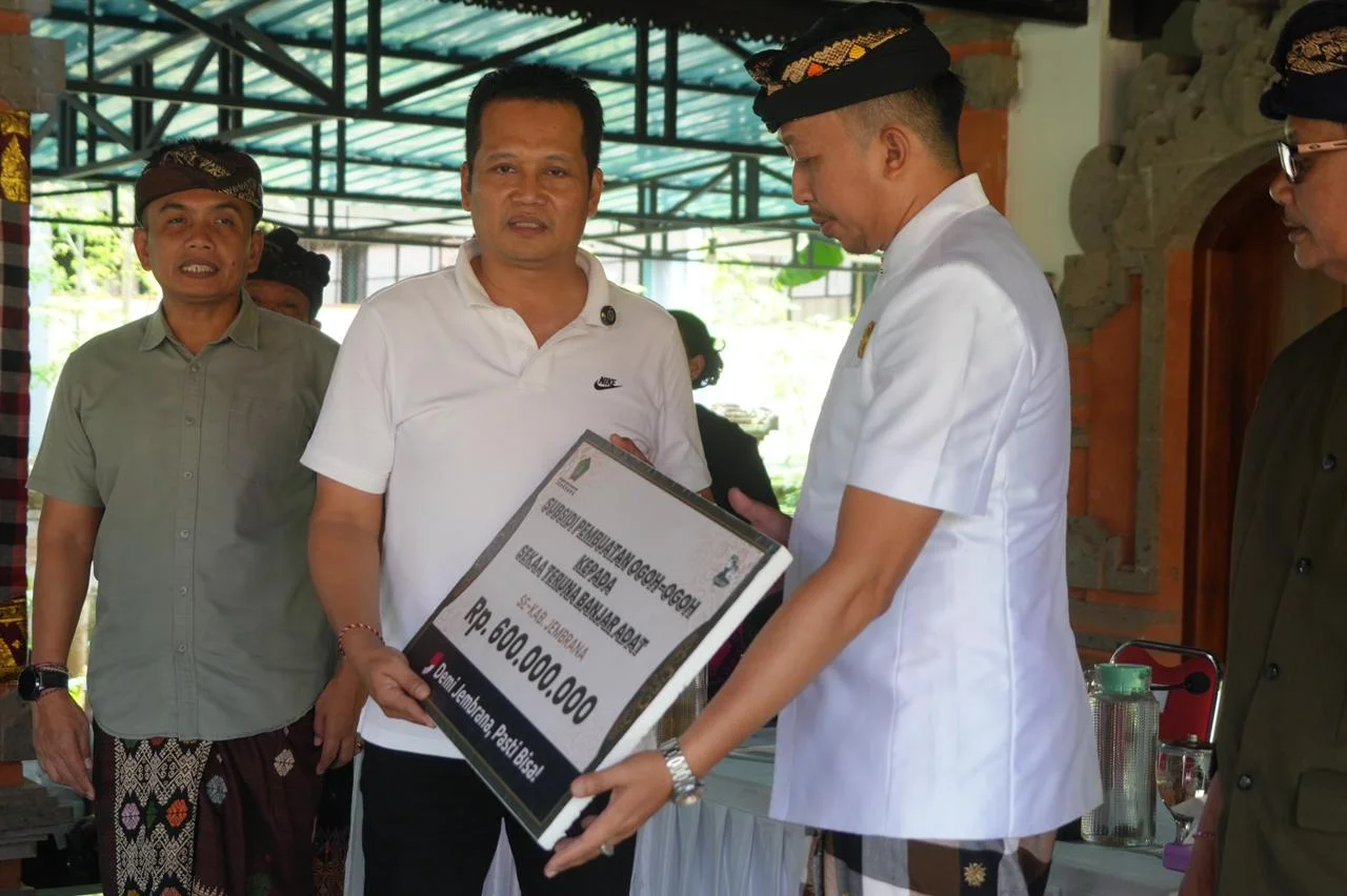 Bantuan tersebut diserahkan langsung Bupati Jembrana, I Made Kembang Hartawan, didampingi Wakil Bupati I Gede Ngurah Patriana Krisna, dalam acara penyerahan Bantuan Keuangan Khusus (BKK) Desa Adat, subsidi ogoh-ogoh, serta insentif Kelian Subak di Wantilan Rumah Jabatan Bupati Jembrana, Jumat 27 Februari 2026 akhir pekan lalu.