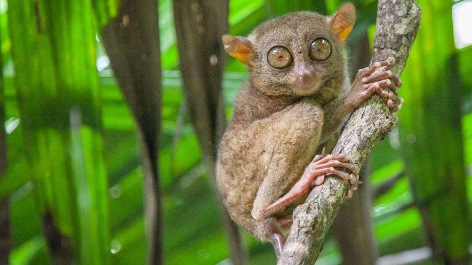 Tarsius adalah primata kecil dengan mata sangat besar, bahkan lebih besar dari otaknya. Struktur tulang kakinya memungkinkan tarsius melompat hingga tiga meter. Hewan nokturnal ini aktif berburu serangga dan hewan kecil pada malam hari, dengan kemampuan memutar kepala hingga 180 derajat. Tarsius hidup di pepohonan dan banyak ditemukan di hutan Sulawesi.