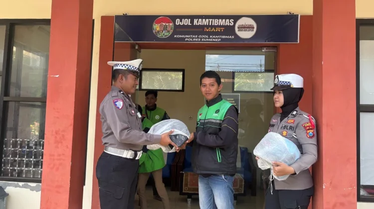 RRI.CO.ID, Sumenep - Personel Satlantas Polres Sumenep melaksanakan kegiatan Polantas Menyapa dengan membagikan helm serta brosur sosialisasi Operasi Ketupat Semeru 2026 kepada pengemudi ojek online di Pos Ojol Kamtibmas Sumenep, Jumat 13 Maret 2026. Kegiatan ini bertujuan meningkatkan kesadaran keselamatan berlalu lintas serta mempererat kedekatan Polantas dengan masyarakat.