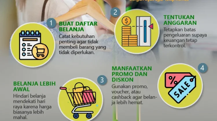 Tips lainnya adalah memanfaatkan promo atau diskon secara bijak. Banyak toko menawarkan potongan harga menjelang lebaran, namun masyarakat perlu tetap selektif agar tidak tergoda membeli barang hanya karena diskon, padahal barang tersebut tidak masuk dalam kebutuhan utama.