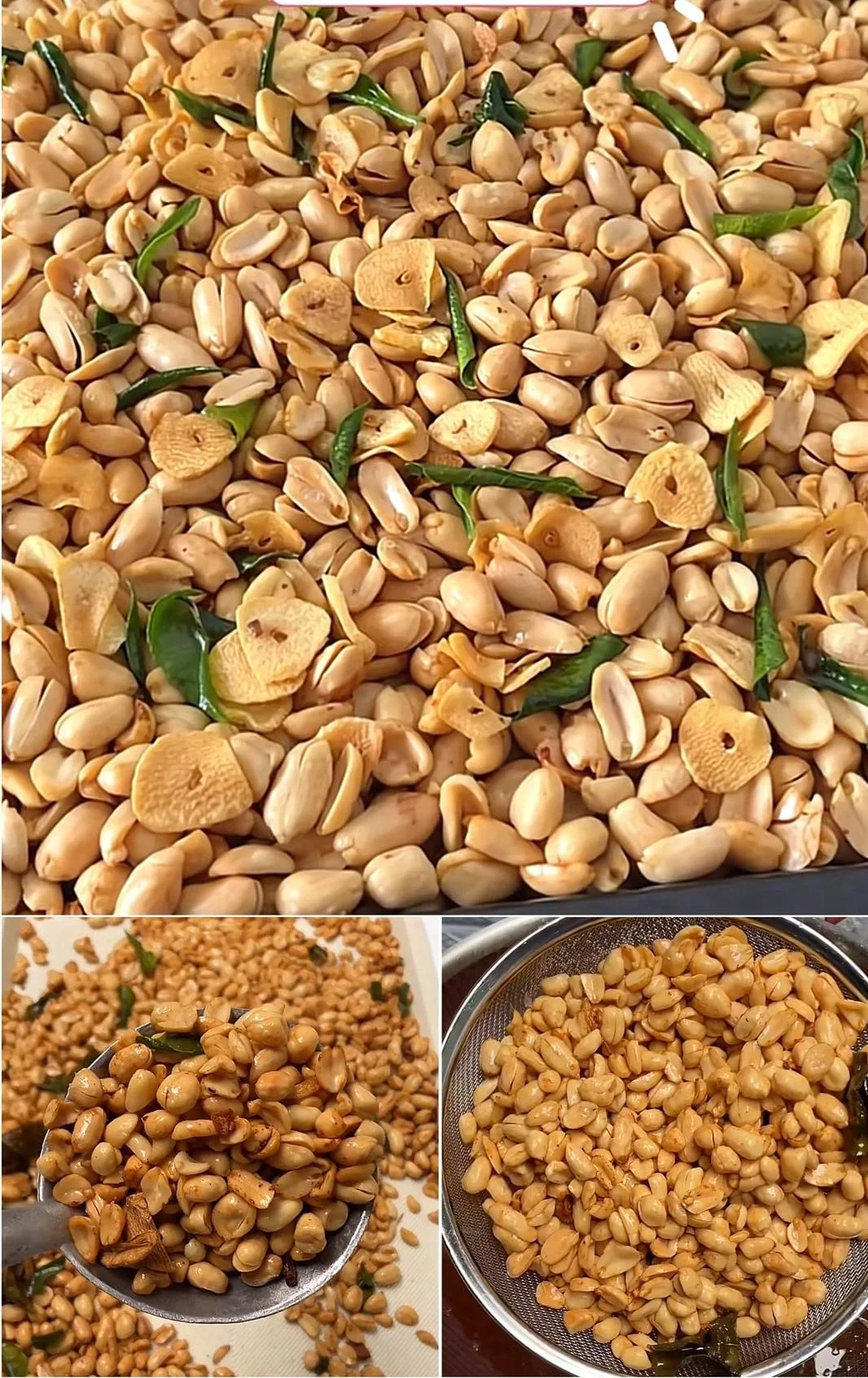 - Campurkan kacang goreng dengan bawang putih goreng dan daun jeruk goreng.
