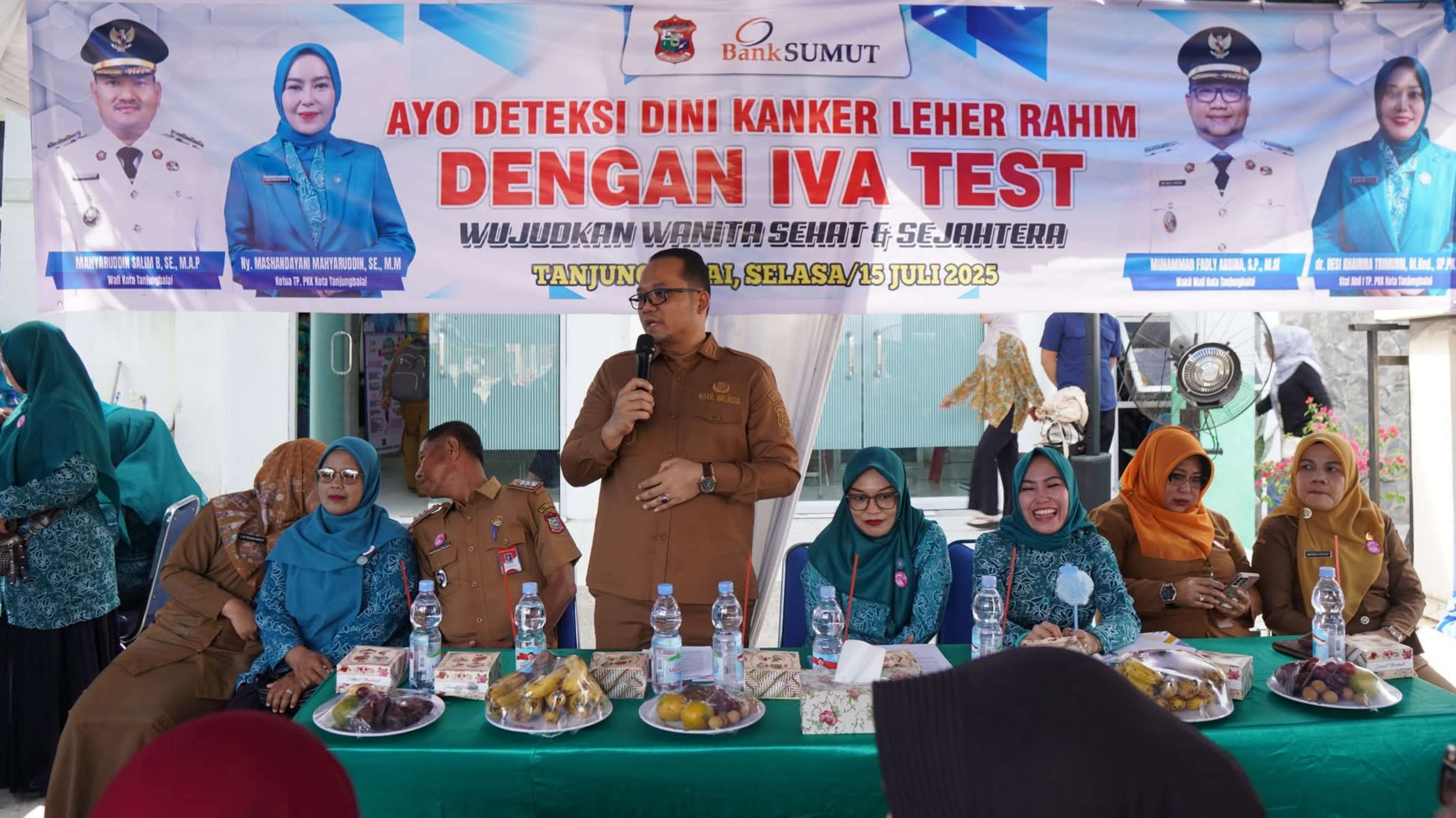 Gebyar Pemeriksaan IVA Test diselenggarakan oleh PKK Kota Tanjungbalai dan Dinas Kesehatan, serta didukung oleh Bank Sumut. Dalam kegiatan juga dilaksanakan layanan pemeriksaan gratis serta bakti sosial penyerahan bantuan sembako. Acara dihadiri oleh Ketua TP PKK Tanjungbalai, Mashandayani, dan Staf Ahli TP PKK, Desi.