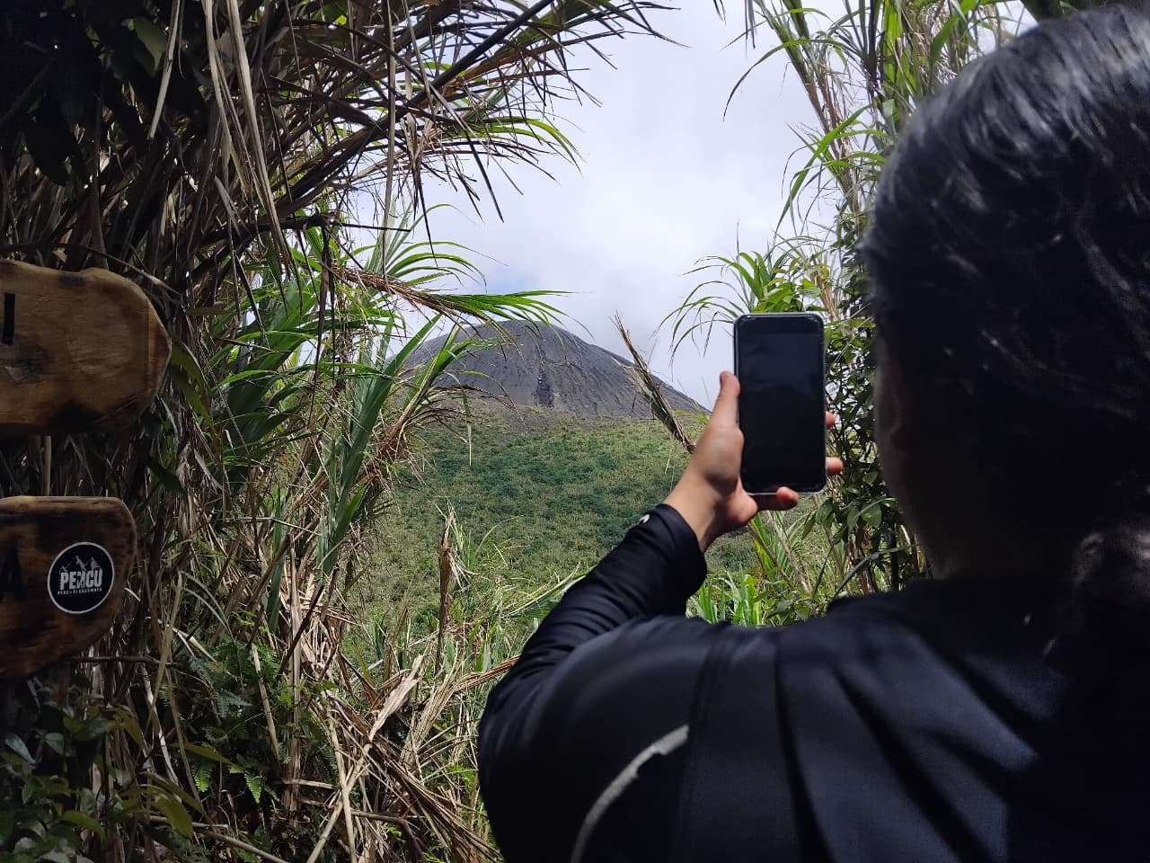 Manto Sitindaon (29) wisatawan yang berdomisili di Tangerang Selatan berupaya untuk mencapai Puncak Gamalama.Foto: RRI/Mario Panggabean